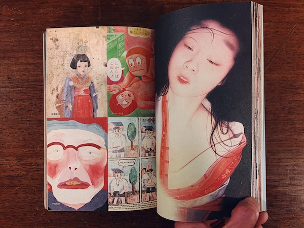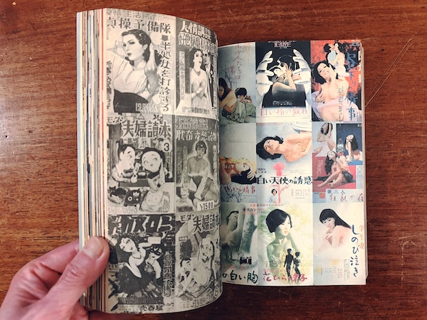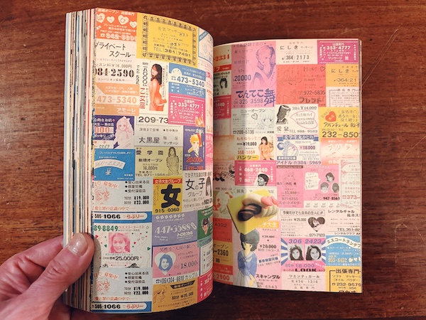ロマンポルノのポスターや電話ボックスに貼られたピンクチラシ、古い雑誌や広告など、膨大な写真とイラストのコラージュでまとめられた作品集。